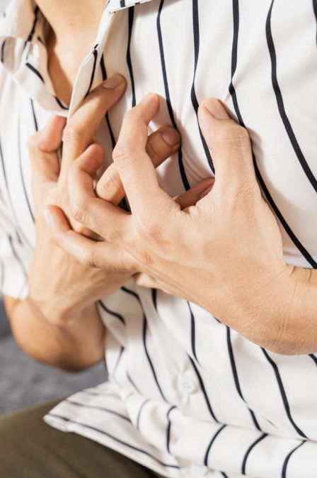 - боли не беспокоят, однако появилось поверхностное дыхание, одышка, внезапные перебои работы сердца;
